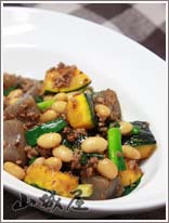 Eまず、ゆでた大豆、大正金時豆を入れる。その上にきゅうり、きくらげ、ひじき、人参を順番に入れる。